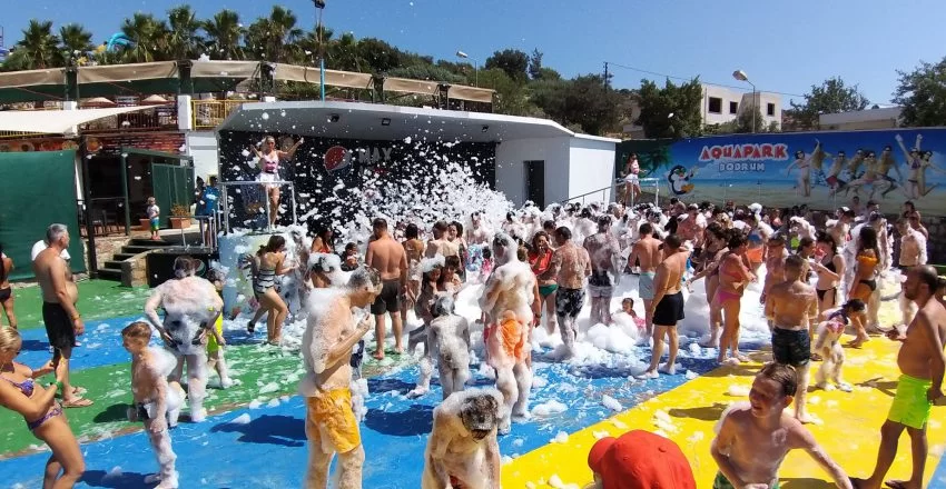 There are areas dotted all over the park with sunbeds and parasols so you can stay safe in the hot sun. The seating areas are close to the pools so you can watch your loved ones nearby. Music is playing all day throughout Bodrum water park, which you can dance to at the amazing foam party. And the restaurant serves a good range of lunch snacks, drinks and ice cream through the day.